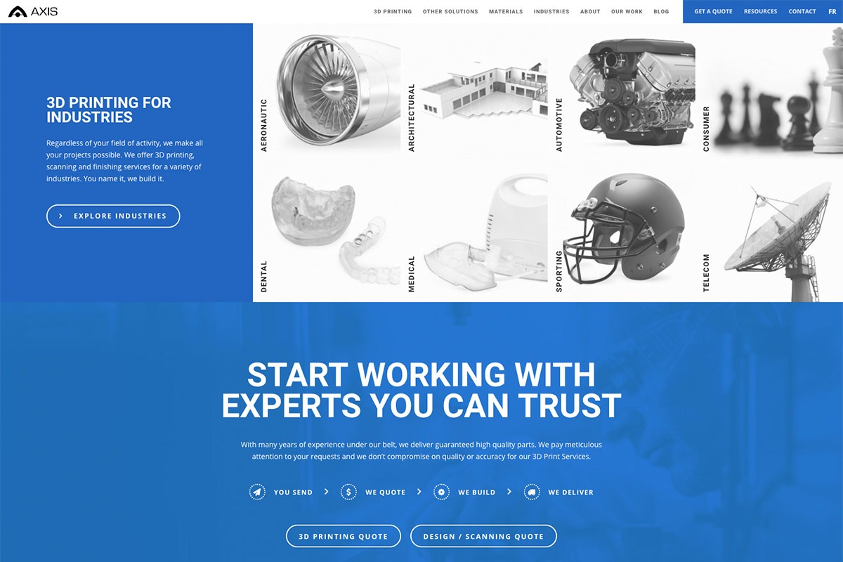 AXIS is a Montreal-based 3D Printing and Rapid Prototyping company whose expertise attracts industrial designers, mechanical engineers and product development specialists, to name a few. As one of the largest competitors in the Canadian market, AXIS offers a score of materials and finishing options to fit the broad demands of their clients, completing their products in minimal time with maximized cost efficiency.