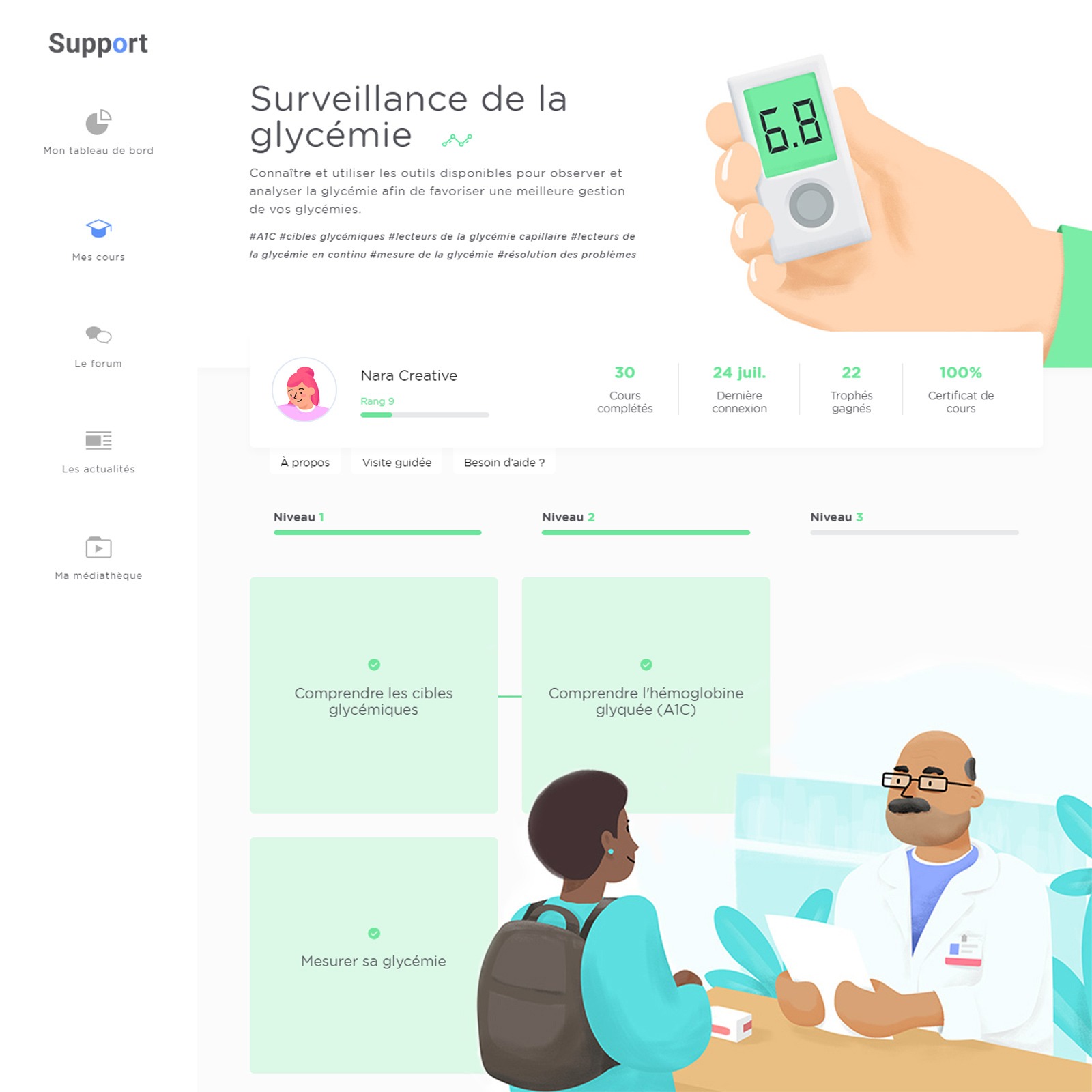 In the spring of 2019, McGill University reached out to Nara to create and set up an online educational platform called Type1Support. This platform is user-friendly, attractive, and easy to use while offering practical and accessible education.